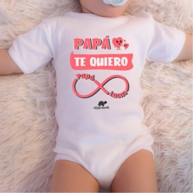 Body personalizado abierto al hombro y manga Corta "Papá Te Quiero Infinito" con diseño unisex de Lavidaesalgomas®, ideal para que el bebé sorprenda a esa persona tan especial de una manera preciosa. Se personaliza con el nombre del bebé y la palabra Papá (se puede sustituir por un nombre o Papi, Papito,... lo que se desee).