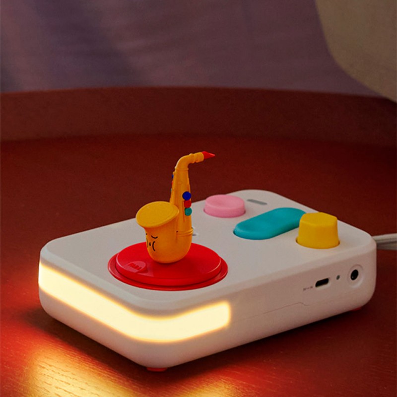 Figura coleccionable FABA de un saxofón con tecnología NFC para usar en el Nuevo Cuentacuentos Starter Set Faba Plus + o en el Cuentacuentos Starter Set de Faba, que contiene una selección de 12 piezas de Jazz Instrumental contemporáneo, para explorar un género musical basado en la improvisación, con una duración aproximada de 60 minutos. Para escuchar las Canciones, basta con poner la figura del Personaje Sonoro en el Cuentacuentos y empezará a reproducirse.
