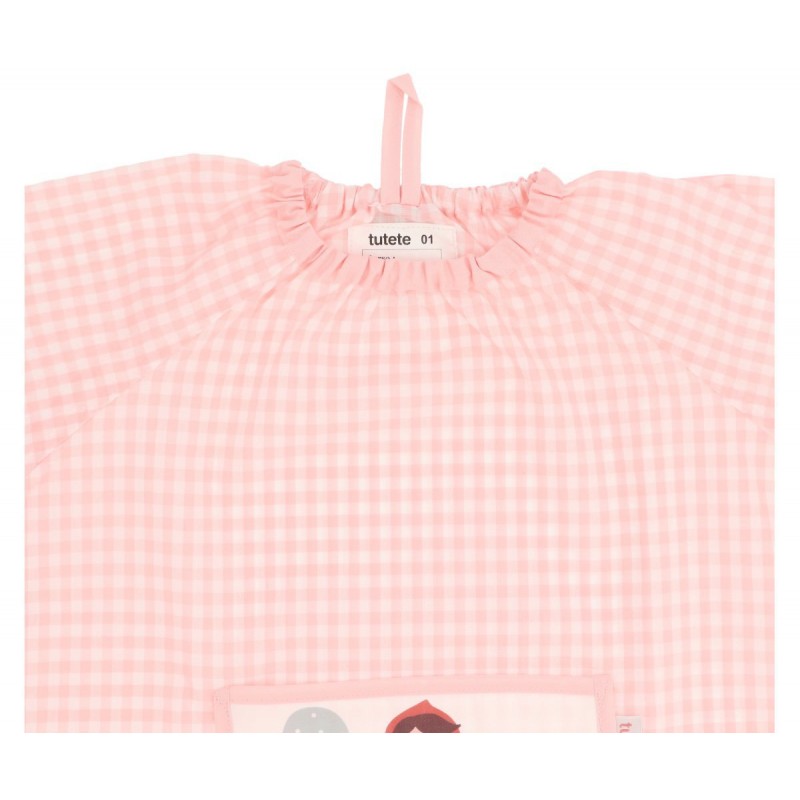 Babi Infantil personalizado con bolsillo central Vichy divertido y funcional de la Colección Vuelta al Cole 2025 Little Red de Tutete, perfecto para que los peques vayan perfectamente uniformados a la Escuela Infantil, Guardería o colegio con la comodidad de llevar un babi sin botones.
