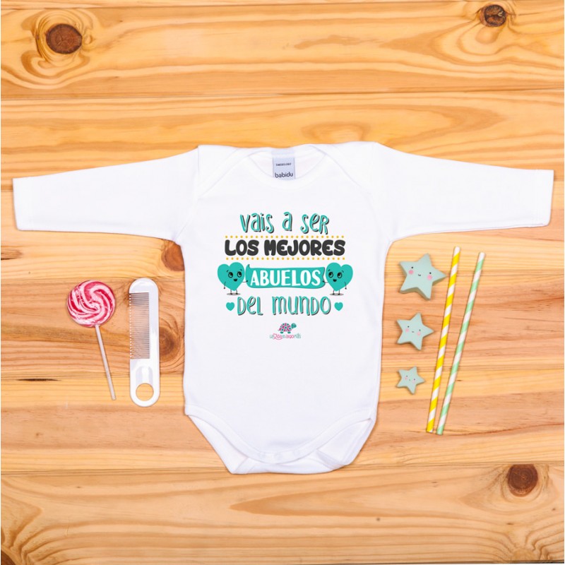 Body Personalizado de manga larga "Vais a ser los mejores abuelos" con diseño en color Mint de Lavidaesalgomas®, ideal para que el bebé pueda tener un recuerdo maravilloso del momento en el que dieron a los abuelos la noticia :)