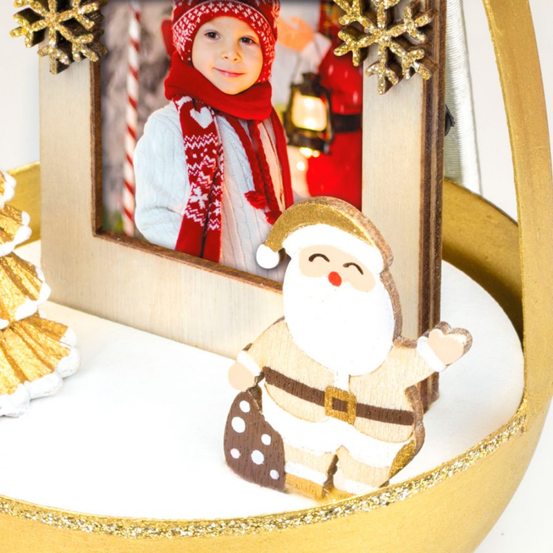 Bola de Navidad Personalizable con Foto y forma de huevo de color dorado y diseño de Papá Noel y árbol de Navidad, perfecta para sorprender a tu pareja, padres, abuelos, familiares, padrinos, madrinas, etc... estas Navidades con un regalo muy original lleno de mucho amor. Este Portafotos personalizable con Foto tiene un precioso diseño de Papá Noel y es perfecto para poner tu foto navideña preferida y llenar de alegría el árbol de Navidad de una manera muy especial durante las Navidades. Se puede personalizar con una foto.