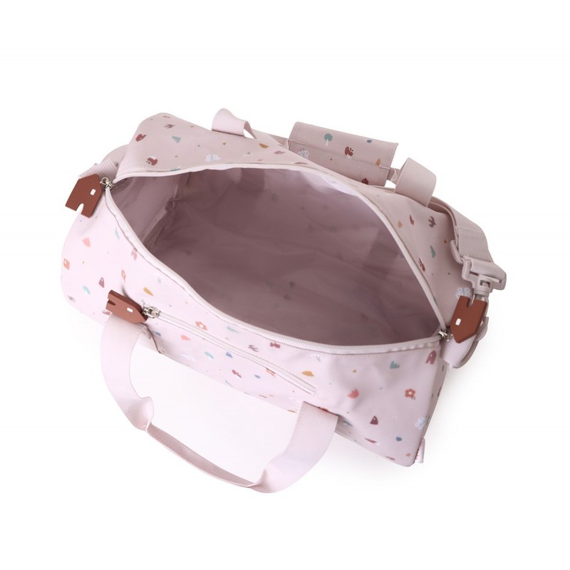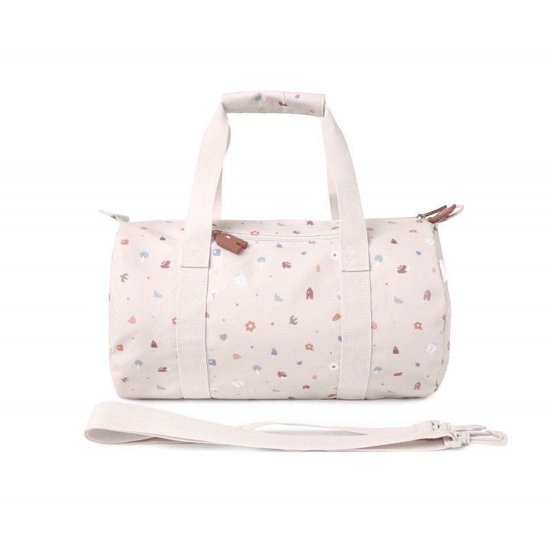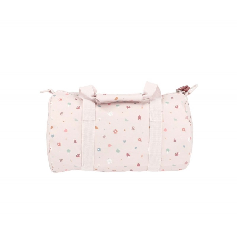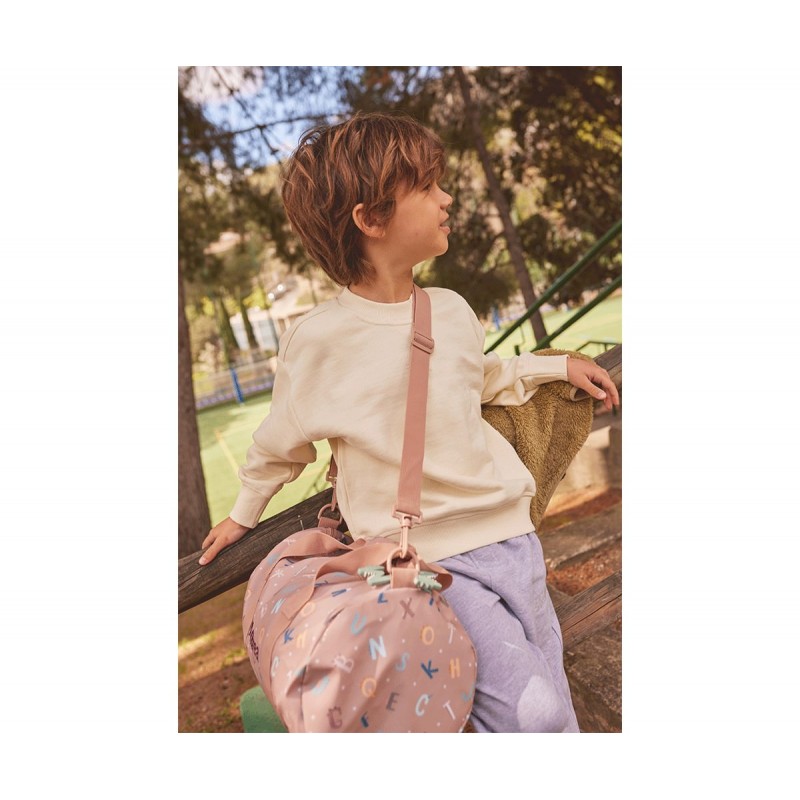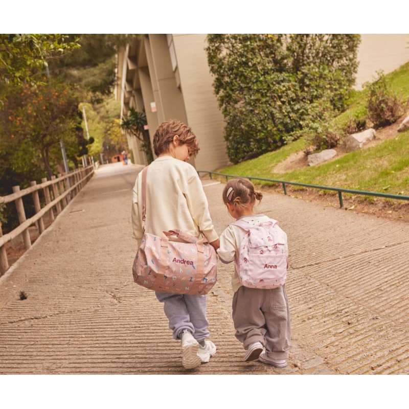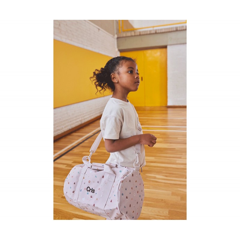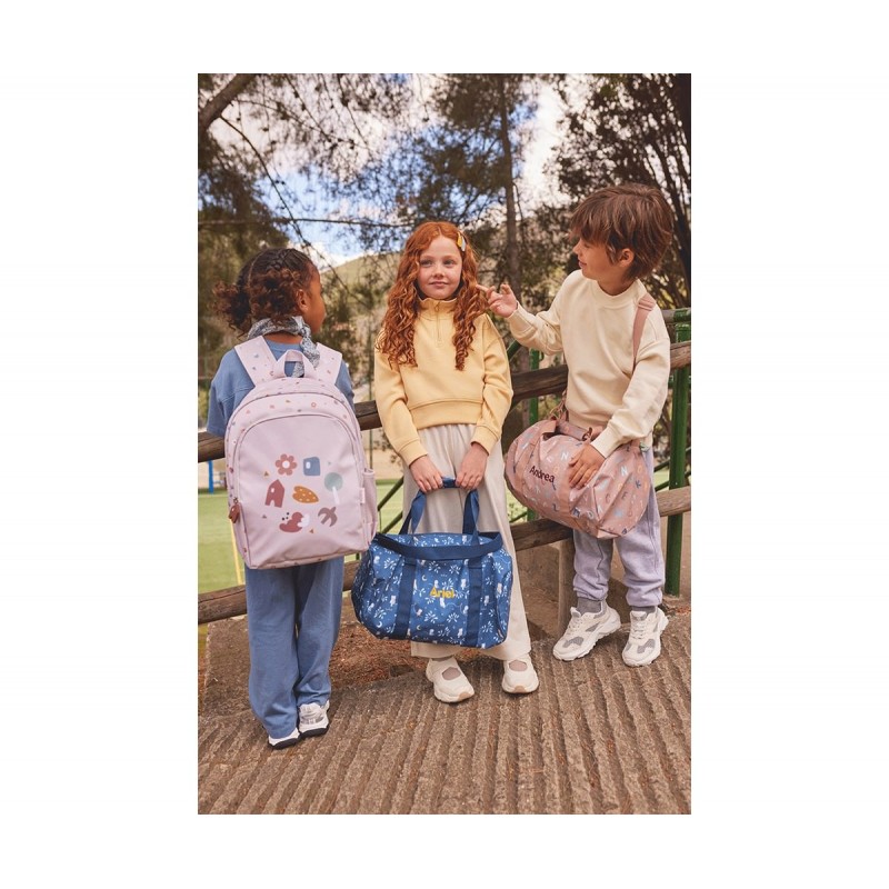 Bolsa Deporte divertida, espaciosa y funcional de la Colección de vuelta al cole de Tutete Geometric Nature 25, con diseño de flores, plantas y animalitos de la naturaleza, para llevar el material deportivo al colegio o las actividades extraescolares. Los tiradores decorativos permite abrirlas y cerrarlas con mayor facilidad, cuentan con asas cortas que se pueden unir, un asa larga para que puedas llevarla al hombro o cruzada y un bolsillo exterior de cremallera donde guardar pequeños objetos.