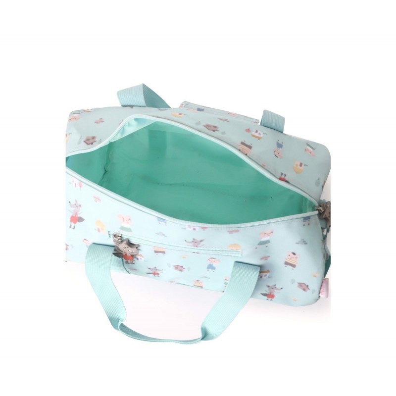 Bolsa Deporte divertida, espaciosa y funcional de la Colección de vuelta al cole de Tutete The three Little Pigs 25, inspirada en el cuento clásico de los 3 cerditos, para llevar el material deportivo al colegio o las actividades extraescolares. Los tiradores decorativos permite abrirlas y cerrarlas con mayor facilidad, cuentan con asas cortas que se pueden unir, un asa larga para que puedas llevarla al hombro o cruzada y un bolsillo exterior de cremallera donde guardar pequeños objetos.