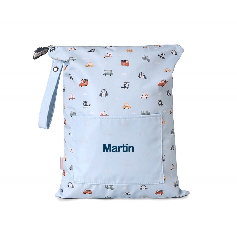 Bolsa impermeable Grande Personalizable de la Colección Vuelta al cole 2025 City Cars de tutete con diseño de vehículos de la ciudad como ambulancias, taxis, helicópteros... , ideal para llevar la muda de recambio a la escuela infantil o en el carrito, guardar la ropa después de natación o incluso como bolsita para guardar la ropa interior cuando vais de viaje.