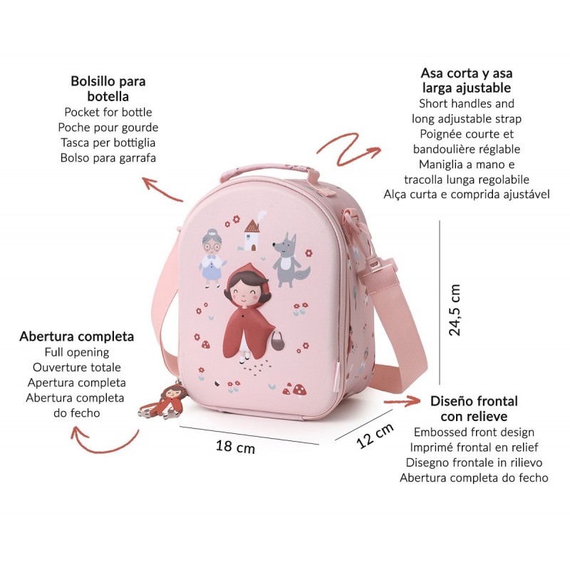 Nueva Bolsa Merienda Térmica 3D de la Colección de vuelta al cole de Tutete Little Red 25 , inspirada en el cuento clásica de capreucita roja. Las bolsas merienda térmicas de tutete combinan diseño y funcionalidad, siendo la opción ideal para llevar el almuerzo o la merienda al colegio, excursiones o cualquier salida, incluso para llevar fruta, y bebida a la playa o piscina. Su tamaño tan compacto hace que no ocupe mucho y su interior térmico y aislante permite que se mantengan los alimentos frescos y a la temperatura adecuada durante más tiempo.