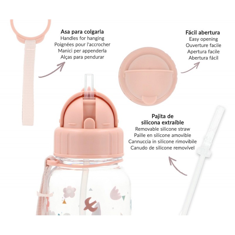 Preciosa botella Infantil de tritán personalizable divertida y funcional de la Colección Geometric Nature es ideal para que tu peque lleve el agua o el zumo a la guardería, escuela infantil, al cole, parque o a las excursiones.