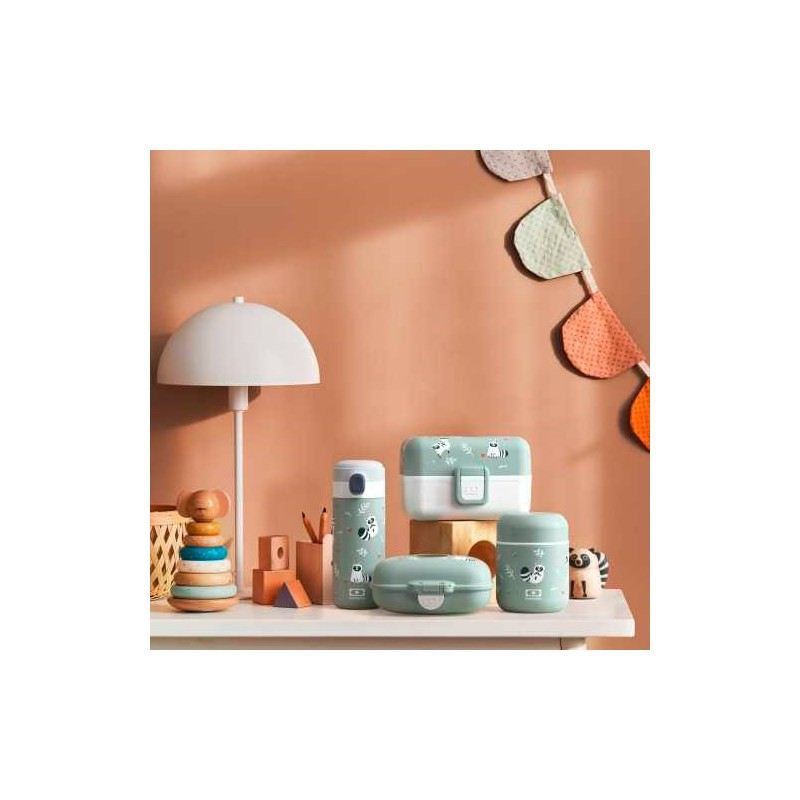 La botella Pop Mapache de Monbento, está fabricada en acero inoxidable y mantendrá las bebidas de los más peques hasta 12 horas bien frescas.