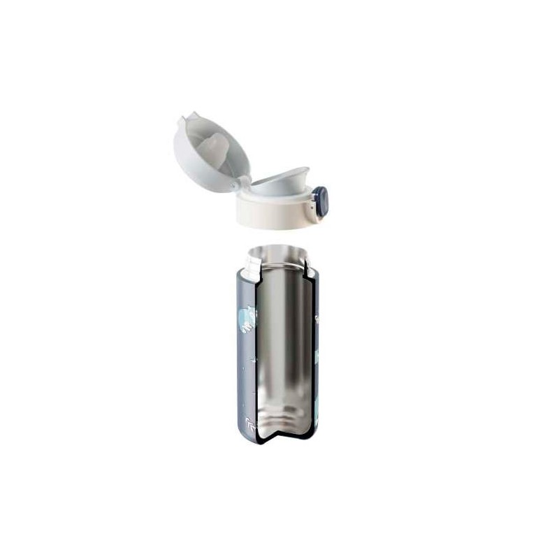 Gracias a su tapón sport provisto de boquilla y botón de seguridad, su uso es de lo más sencillo, ¡sin fugas al fondo de la mochila!