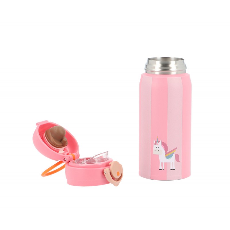 Preciosa y original botella térmica de acero inoxidable de 350ml de la marca Noui Noui, modelo Unicorn. Las botellas de agua para niños de Noui Noui son a prueba de fugas lo que las hace perfectas para que los peques las lleven al cole, la guardería, al parque o de paseo.