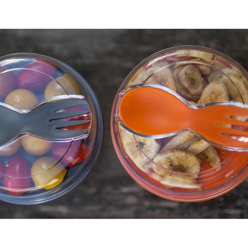 Con dos compartimentos separados, mantiene tus alimentos frescos hasta la hora de comer. Incluye una cuchara/tenedor acoplado a la tapa para una mayor comodidad.