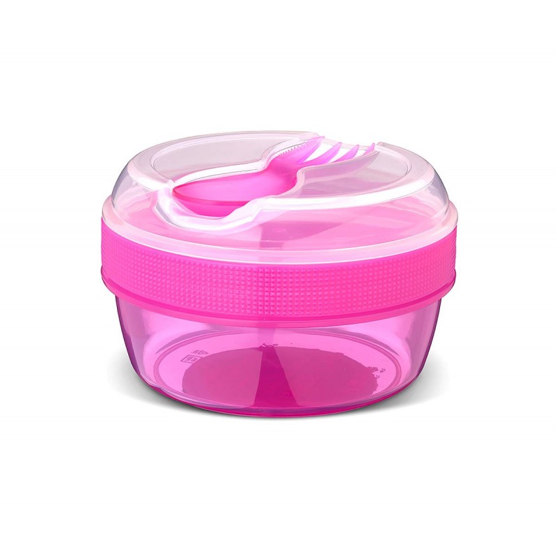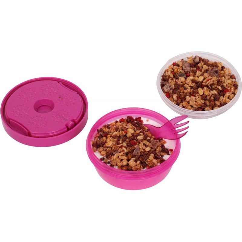 Con dos compartimentos separados, mantiene tus alimentos frescos hasta la hora de comer. Incluye una cuchara/tenedor acoplado a la tapa para una mayor comodidad.