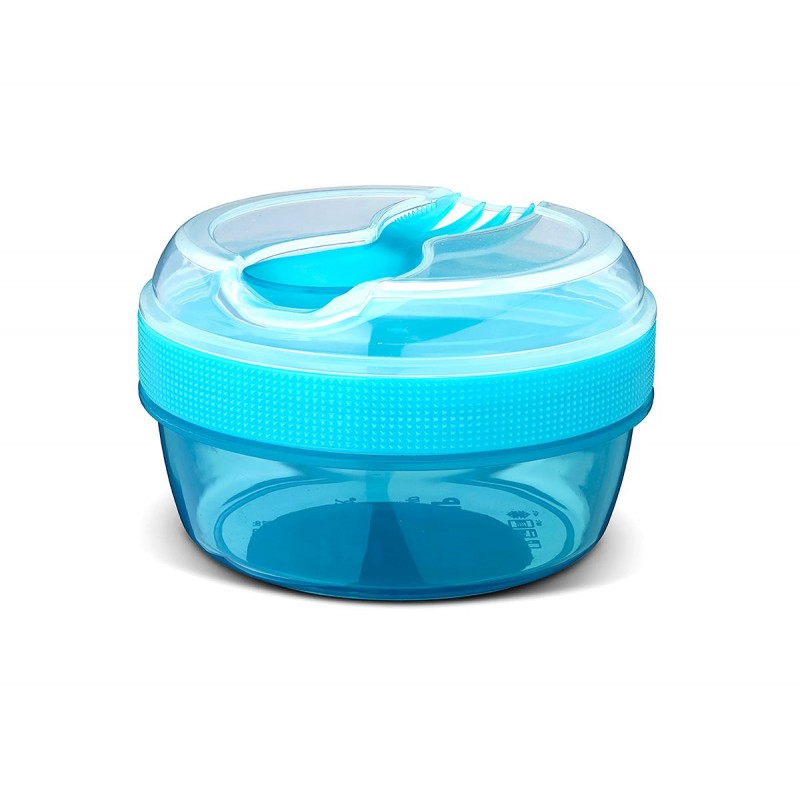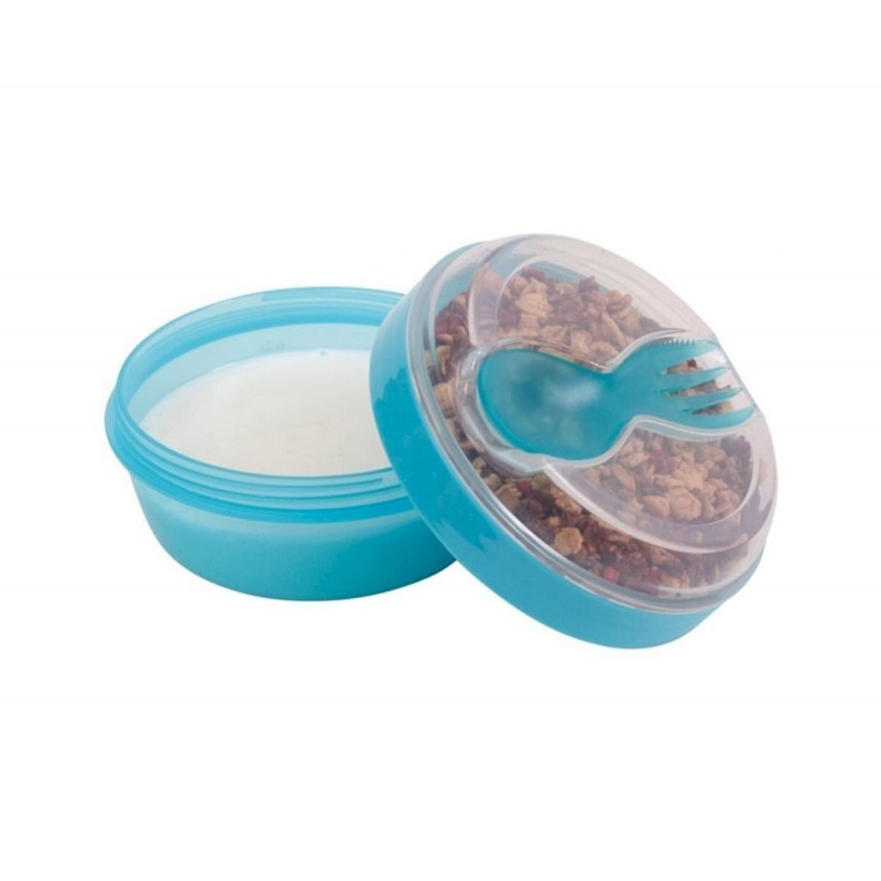 Con dos compartimentos separados, mantiene tus alimentos frescos hasta la hora de comer. Incluye una cuchara/tenedor acoplado a la tapa para una mayor comodidad.