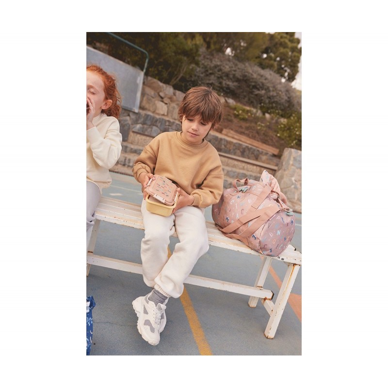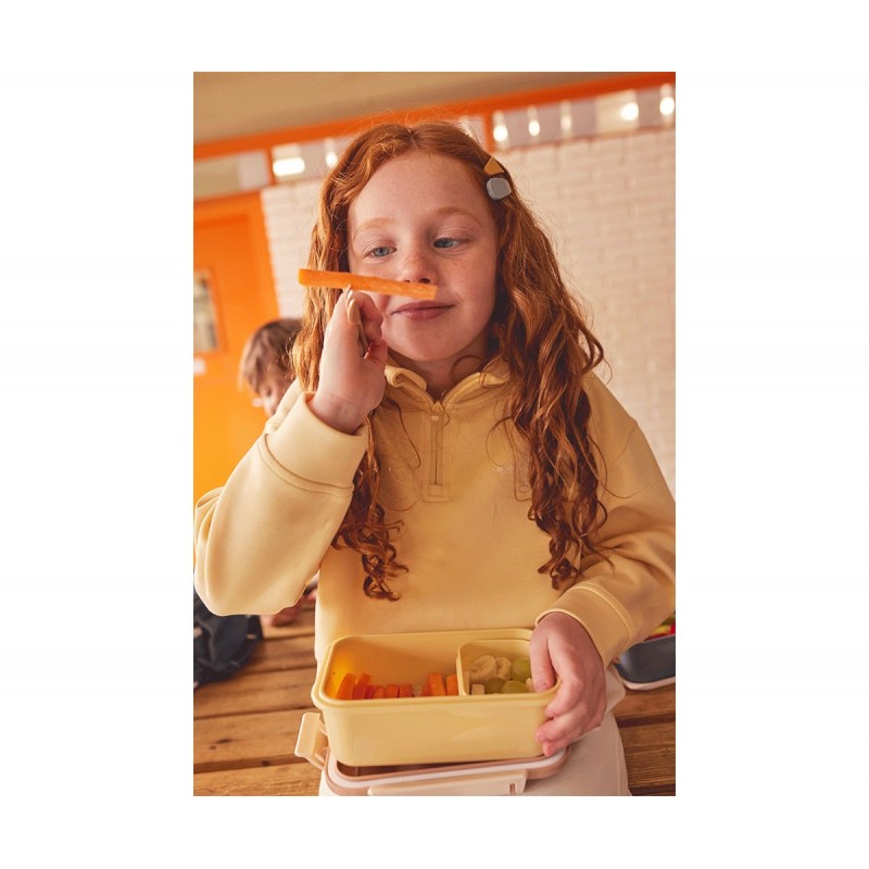 almuerzo al cole, playa, piscina, etc.. que inlcuye un Tenedor y una cajita interior separadora, para llevar también la fruta.