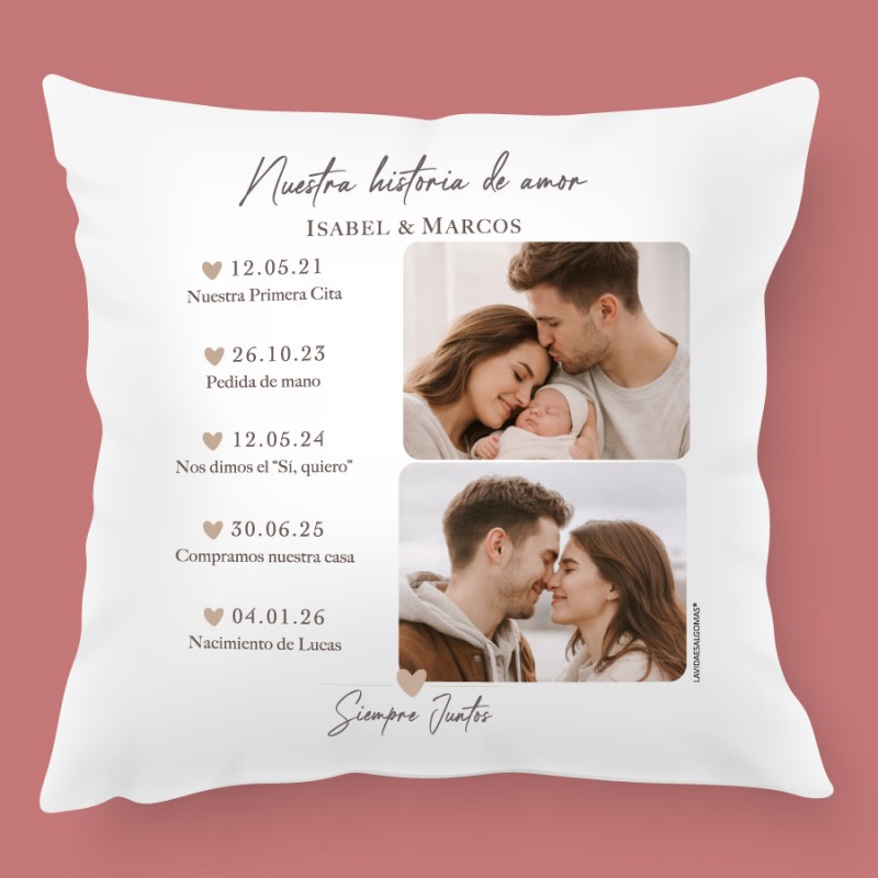 Si buscas un regalo especial para regalar por San Valentín, Día de los enamorados, o cualquier ocasión a tu pareja, ¡sin duda este es un regalazo que les encantará! Es un regalo que emocionará mucho, porque tener recogido en un cojín vuestra historia de amor...¡es maravilloso!