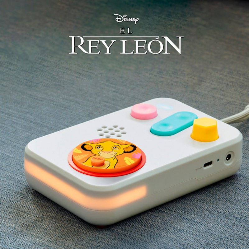 Disco Sonoro coleccionable FABA Disney El Rey León con tecnología NFC para usar en el Nuevo Cuentacuentos Starter Set Faba Plus + o en el Cuentacuentos Starter Set de Faba, que contiene la historia de Disney de el Rey León, con una duración aproximada de 35 minutos. Para escuchar las Historias, basta con poner el disco Sonoro en el Cuentacuentos y empezará a reproducirse.