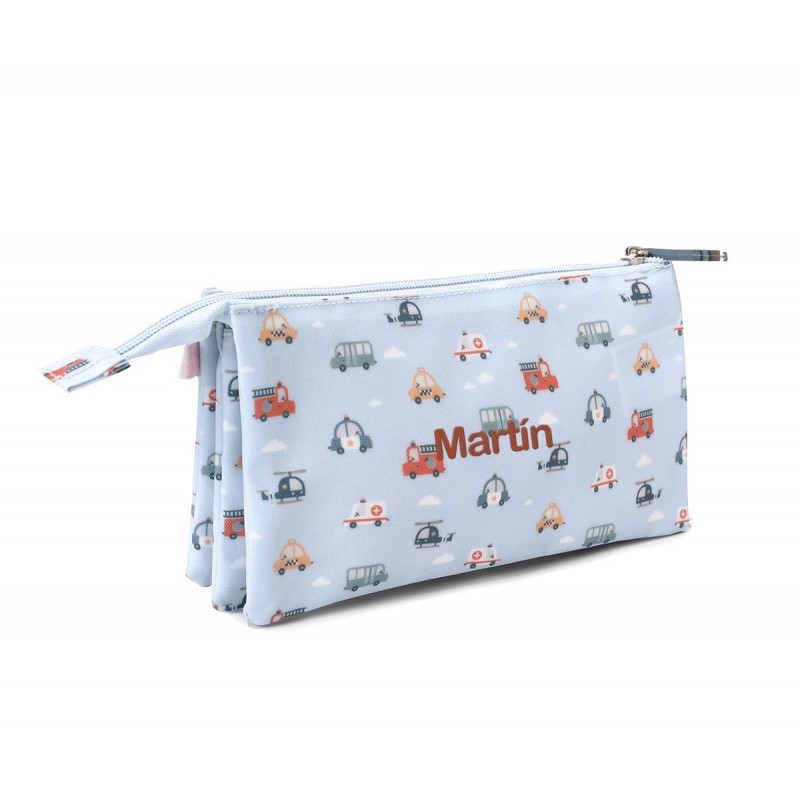 Este precioso, original y divertido Estuche escolar Personalizable con 3 compartimentos para el cole o escuela infantil de la Colección vuelta al cole Tutete City Cars 2025 con diseño de vehículos de la ciudad como ambulancias, helicópteros, taxis, etc... es ideal para guardar y tener ordenados tus bolis favoritos, lápices, sacapuntas, marcadores, subrayadores y todo el material escolar en los diferentes compartimentos.