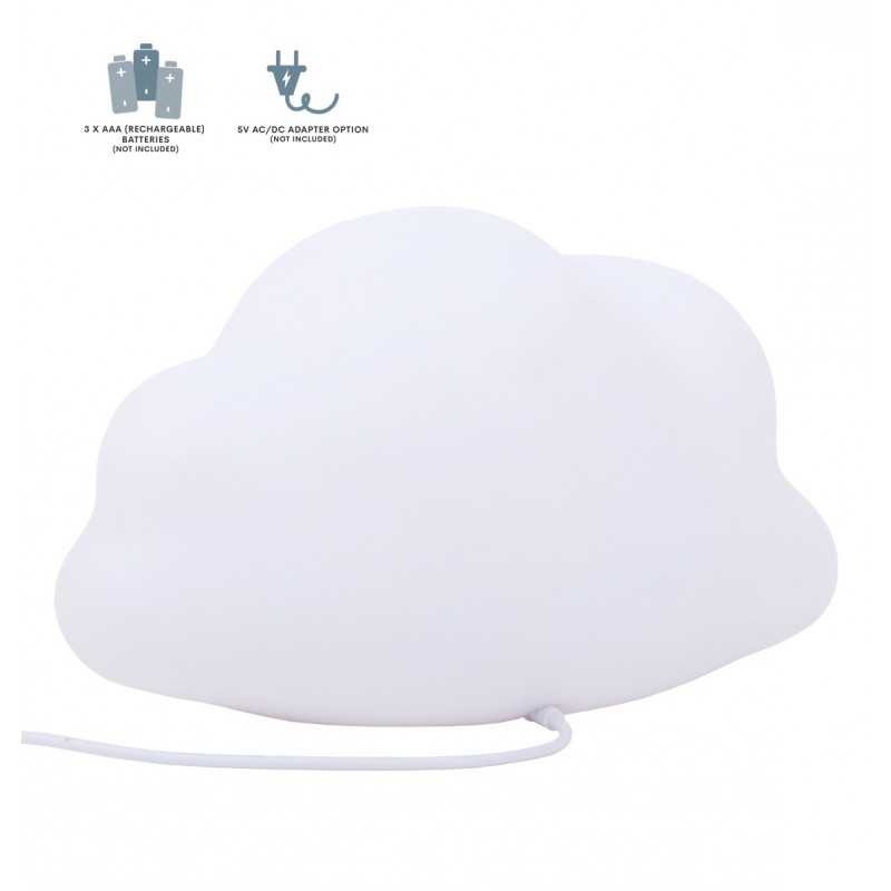 Con la luz de esta preciosa y alegre lámpara quitamiedos con forma de Nube, los más peques de la casa se sentirán tranquilos y seguros en la oscuridad de la noche. Funciona con luces LED de larga duración que evitan el calentamiento de la lámpara, por lo que es segura para los niños.