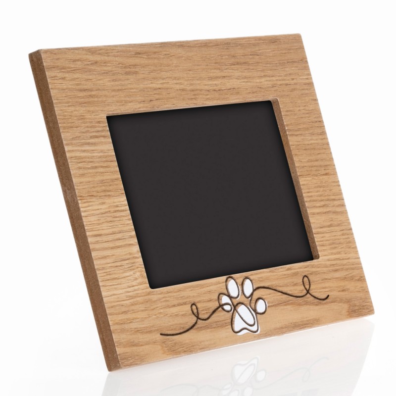 Marco de Fotos de Mascotas Personalizado con Foto de color madera con diseño de huellas perfecto para sorprender con un regalo muy original lleno de mucho amor. Este Portafotos personalizable con Foto tiene un precioso diseño en color madera con unas huellas en color blanco y es perfecto para poner la foto de tu mascota y llenar de alegría ese rinconcito de la casa. Se puede personalizar con una foto.