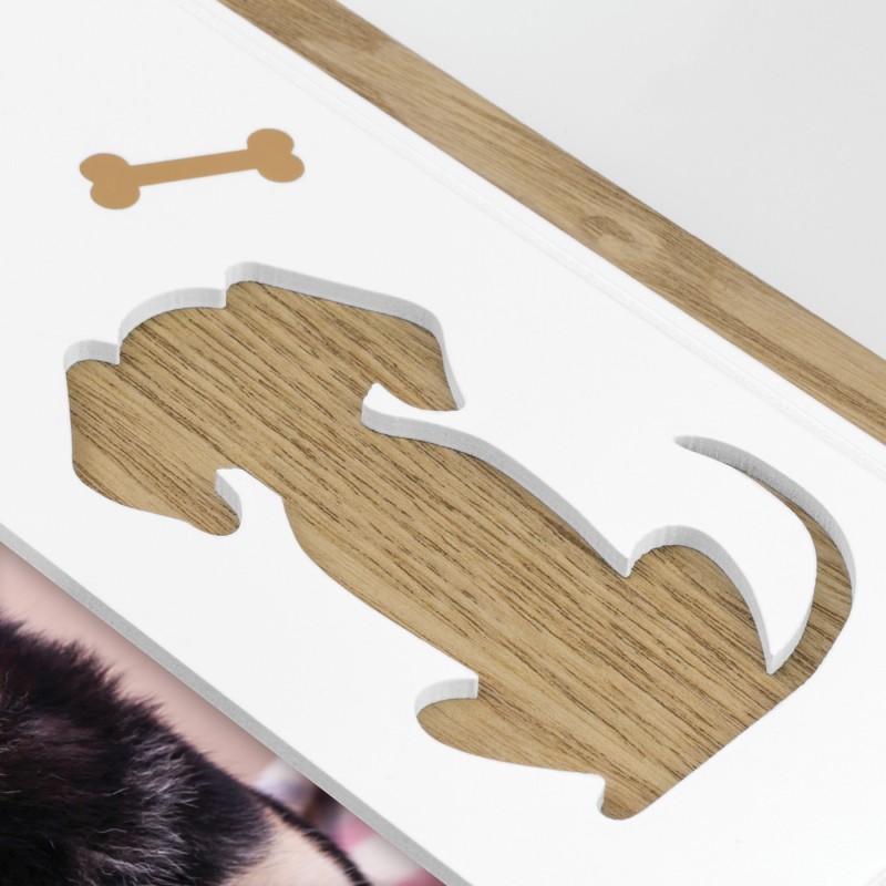 Marco de Fotos de Mascotas Personalizado con Foto de color madera con diseño de perro y hueos perfecto para sorprender con un regalo muy original lleno de mucho amor. Este Portafotos personalizable con Foto tiene un precioso diseño en color madera y una sombra de un perro y huesos y es perfecto para poner la foto de tu mascota y llenar de alegría ese rinconcito de la casa. Se puede personalizar con una foto.