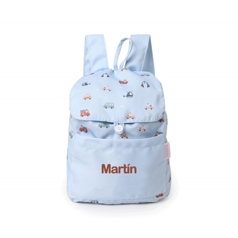 Su primera mochila: ligera, práctica y con su nombre bordado.