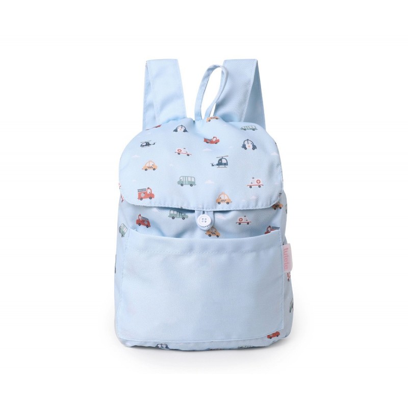 Esta mochila de tela de pequeño tamaño Personalizable con los estampados de la Colección de Vuelta al cole City Cars de Tutete 25 , inspirada en vehículos de la ciudad como ambulancias, taxis, etc.. es ideal para llevar a la escuela infantil, de excursión o de paseo fuera de casa.