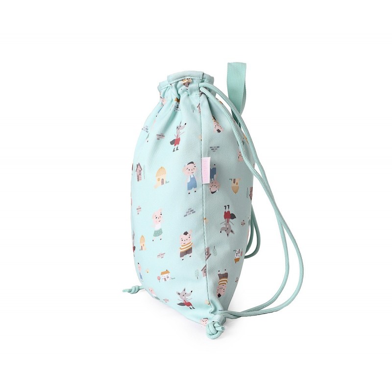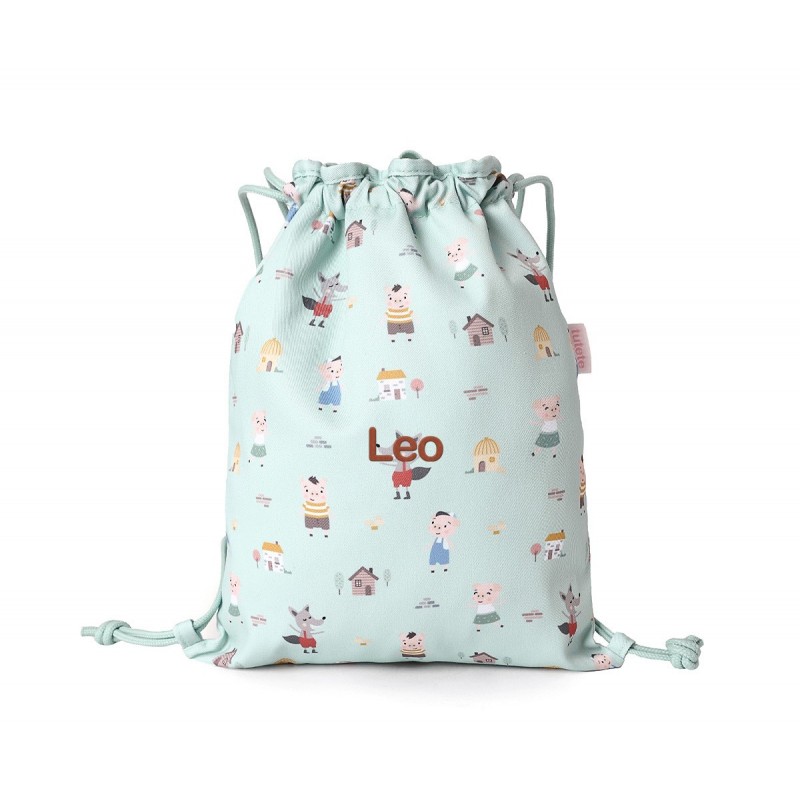 Mochila de cuerdas saco de tela Personalizable de la Colección Vuelta al cole Tutete 2025 The Three Little Pigs inspirada en el cuento clásico de Los 3 Cerditos, dispone de cuerdas para colgar en la espalda.