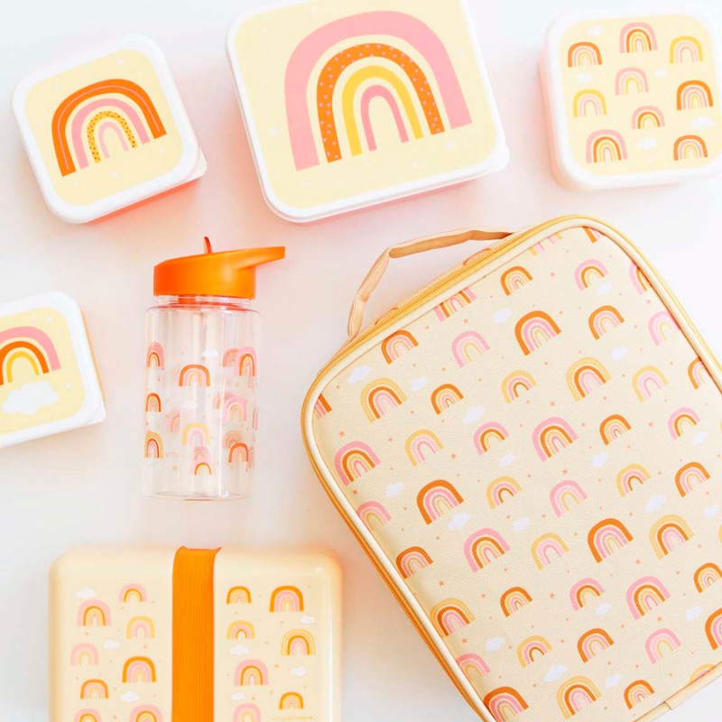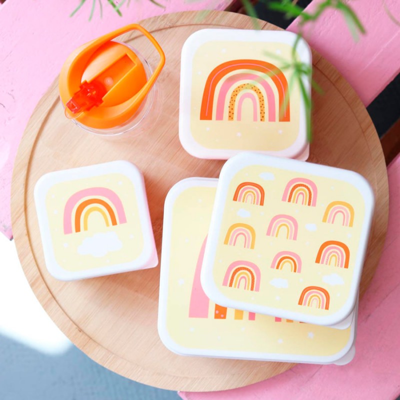 Precioso pack de 4 cajitas almuerzo con diseño de Arcoíris ideales para llevar el almuerzo al cole, al parque, de excursión...