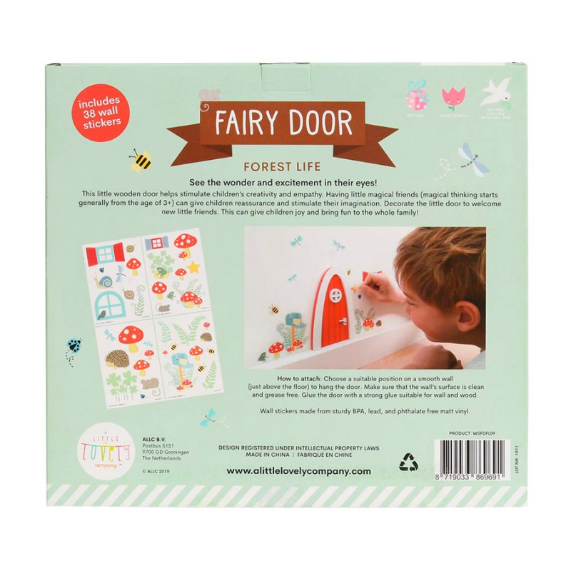 Dispone de ventana con forma de corazón y pomo y se puede decorar con pegatinas con diseños de Hadas (Incluidas) que podrás colocar alrededor de la puerta, por lo que también es perfecta para ayudar a crear historias sobre hadas imaginarias que viven al otro lado de la puerta e incluso ayudar a los peques a combatir el miedo hacia los seres imaginarios. Es perfecta para estimular el desarrollo de la creatividad, las actividades de juego y la empatía del pequeño. Incluye una hoja con 40 pegatinas.