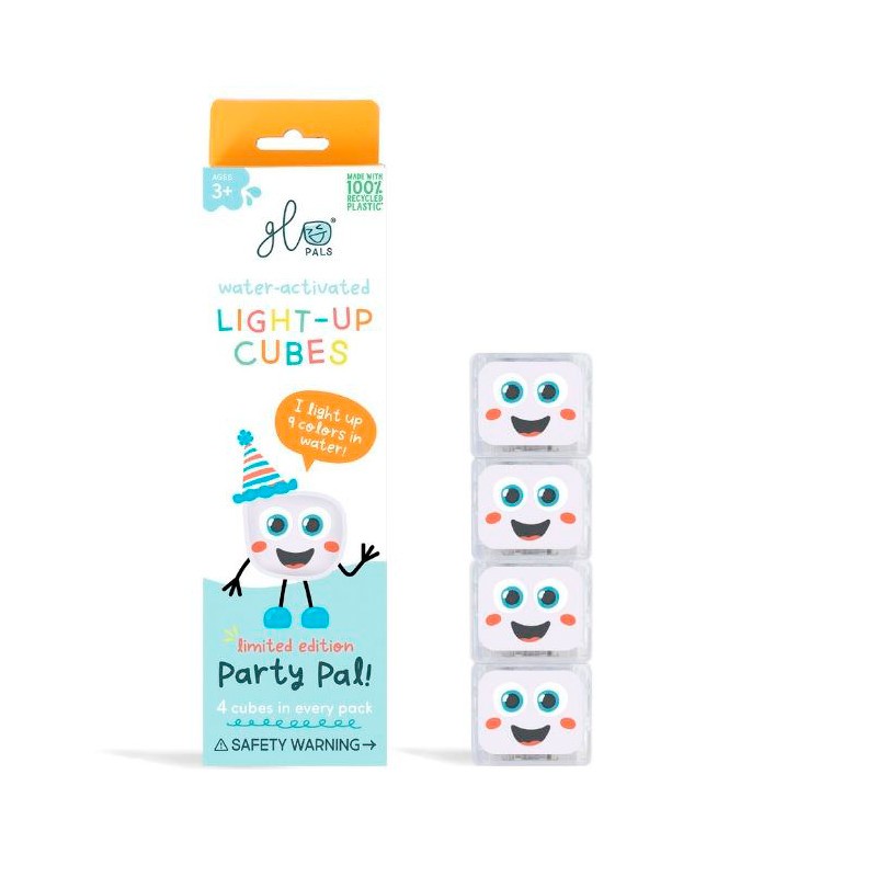 Set compuesto por 4 cubos de Luz Led Mágicos de color Blanco (Party) Multicolores que se iluminan al contacto con el agua de la marca Glo Pals.