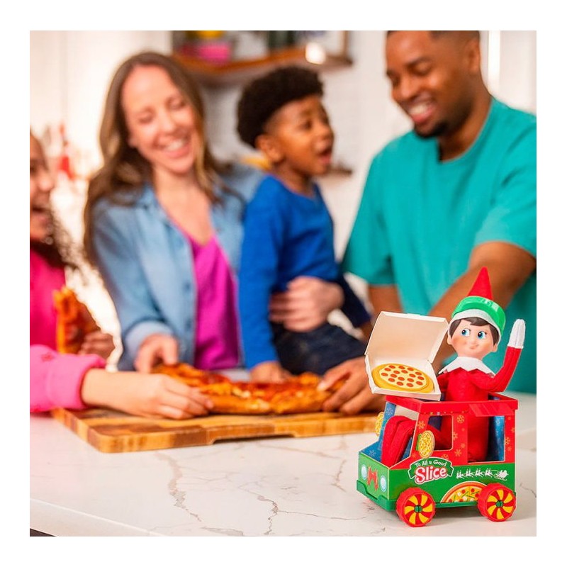 ¡Llegó la hora de la cena! Tu elfo trae a casa todo lo necesario para una velada familiar inolvidable llena de Pizza y Magia